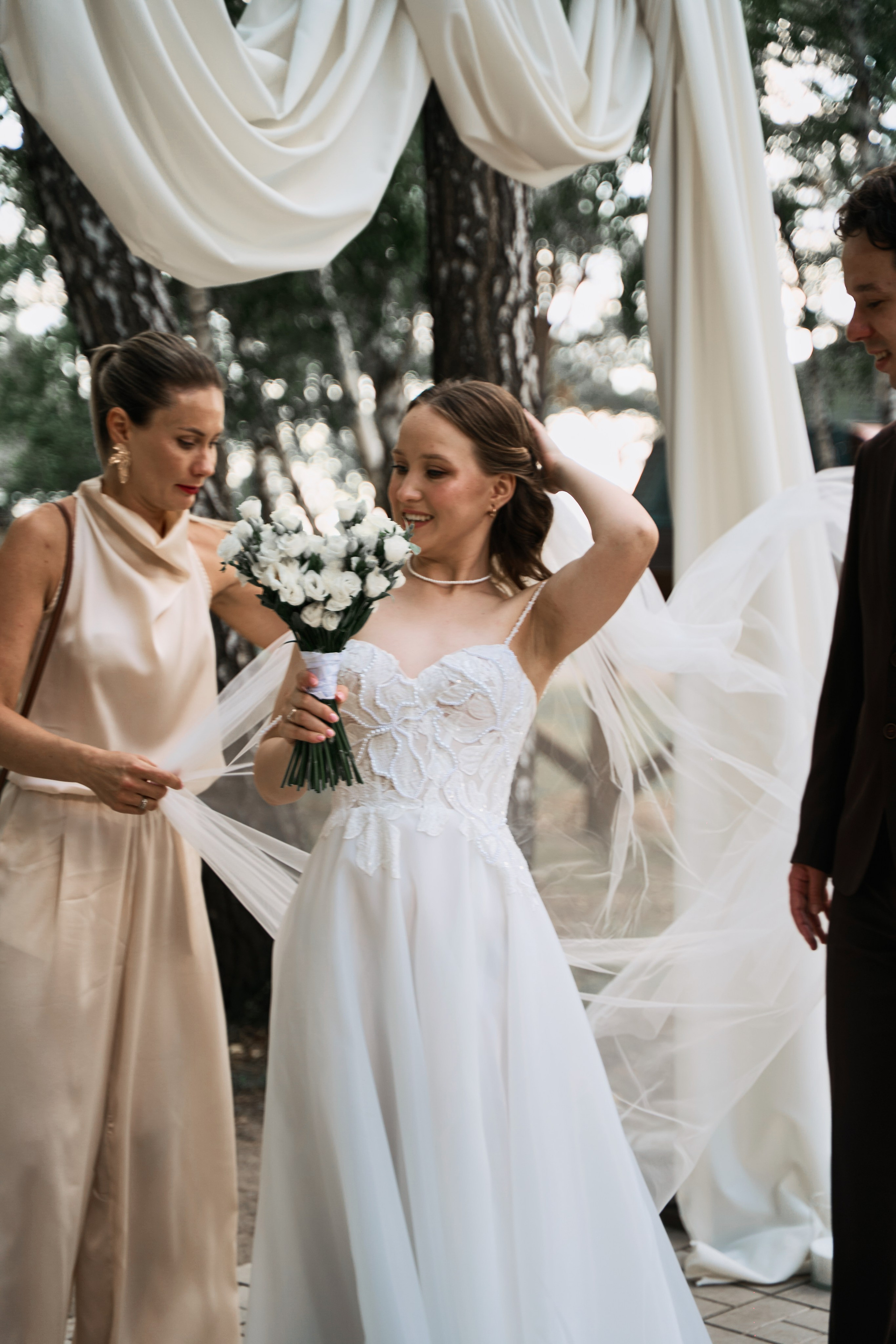 Эта свадьба стала воплощением нежной любви и единения с природой. Мы создали для Евгения и Анастасии праздник, где каждая деталь гармонировала с тихим шепотом леса и вековыми камнями парка. Элегантность, легкость и дыхание свежего ветра.